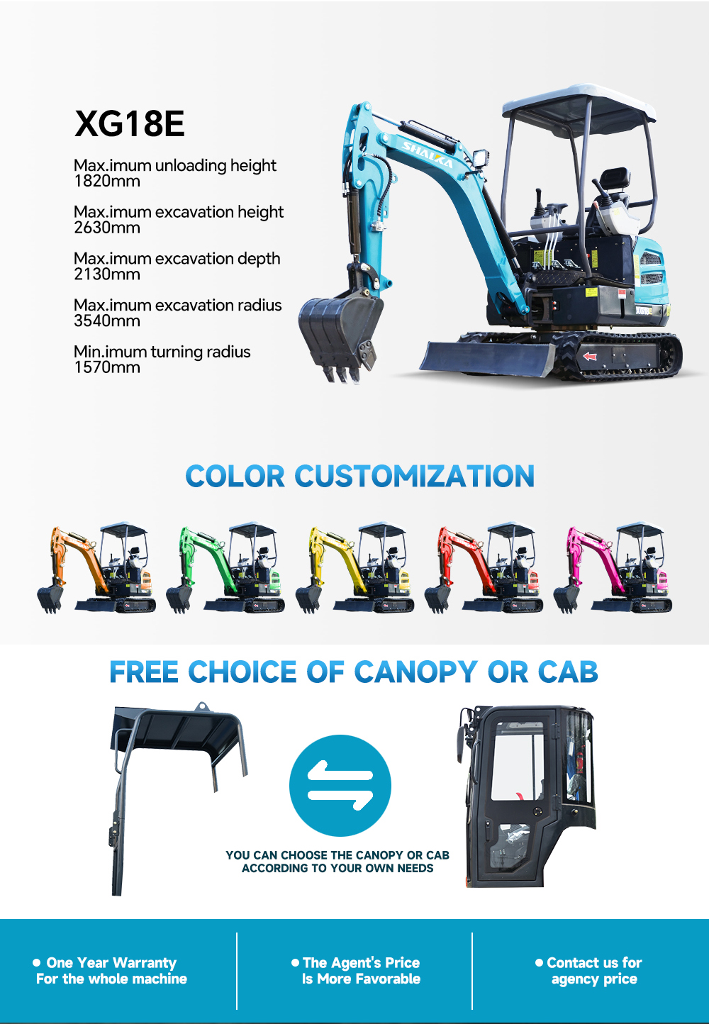 Product advantages of XG18E mini excavator