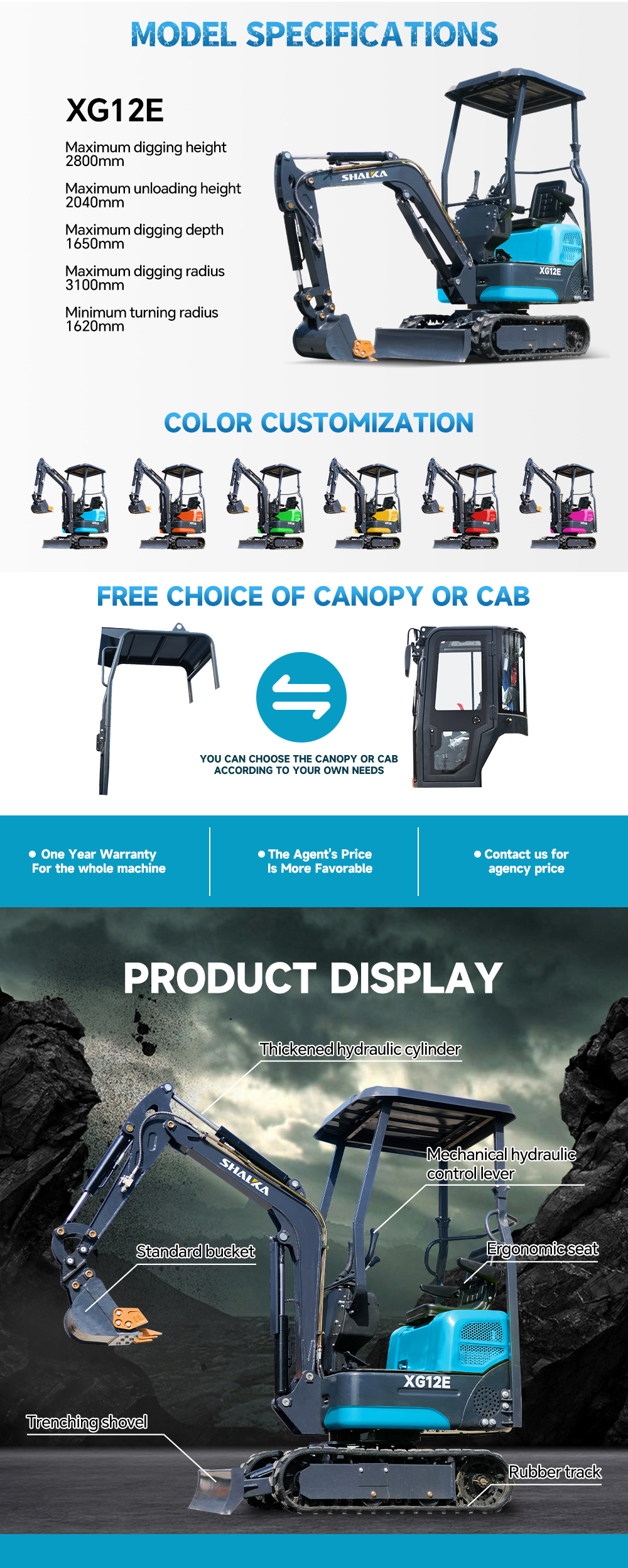 XG12S-5 small excavator, equipped with a plunger